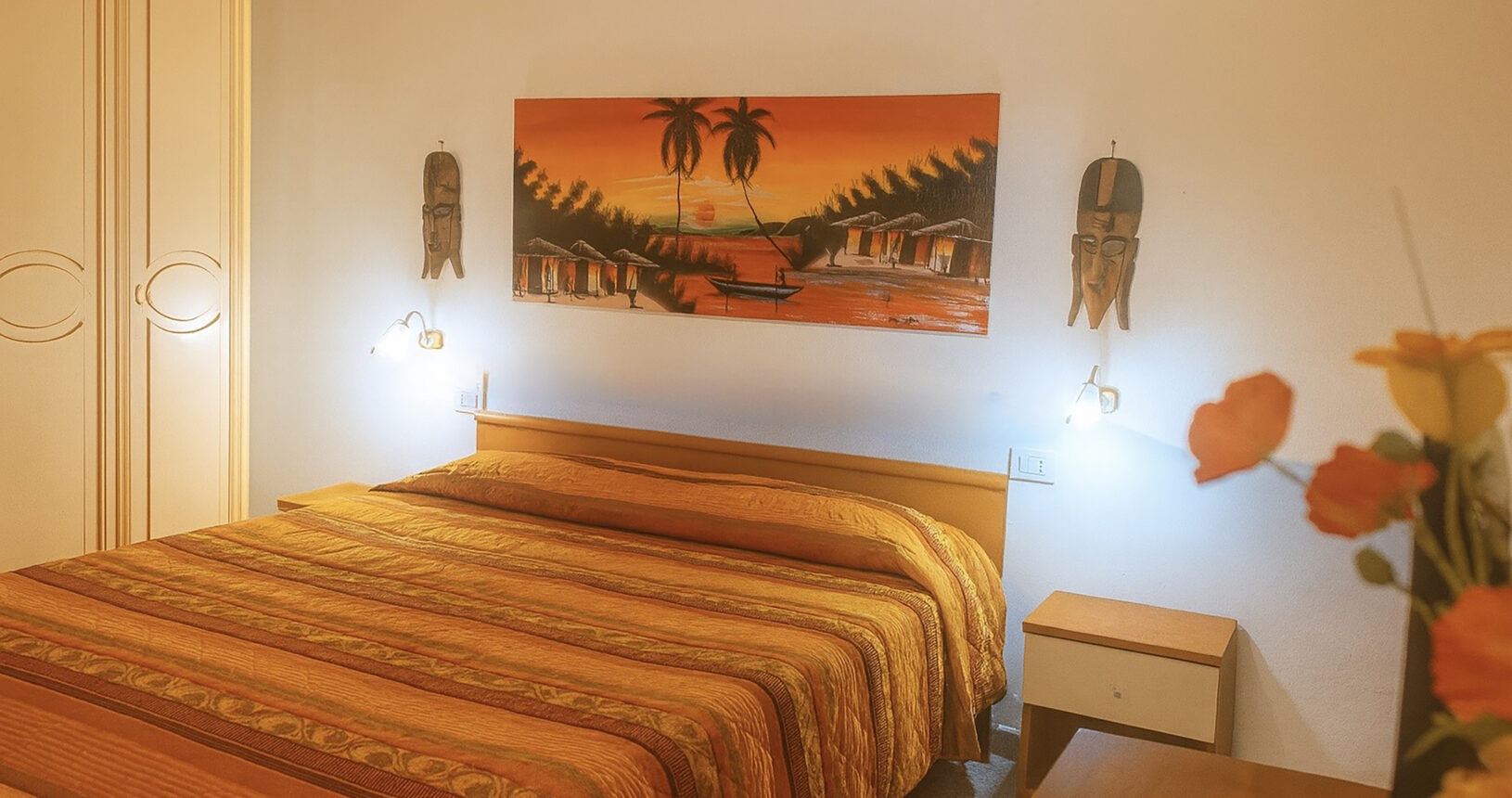 Camera matrimoniale + 1 letto singolo con bagno interno.